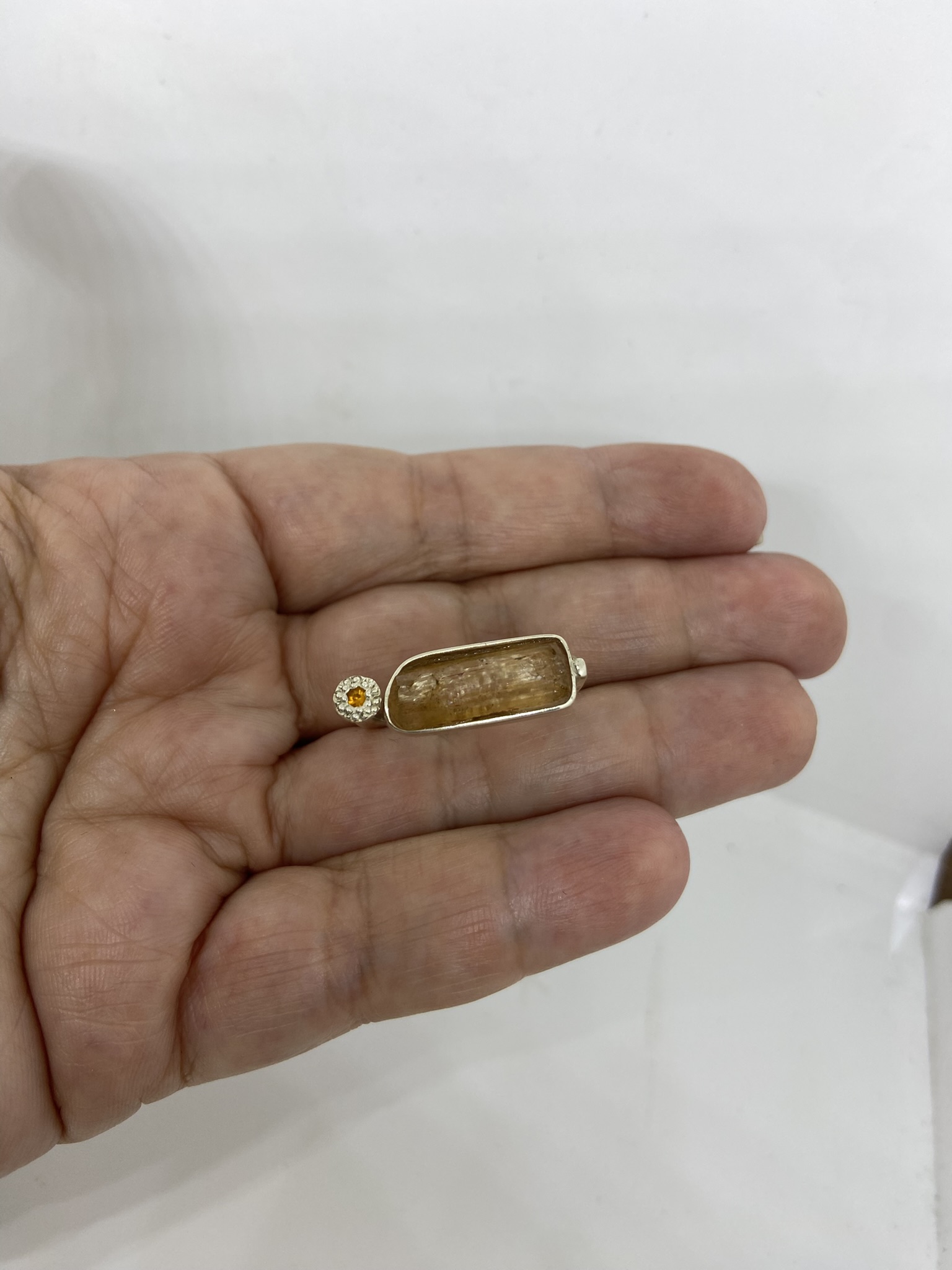 Anel em prata 925, topázio imperial e citrino - veste do 19 ao 22