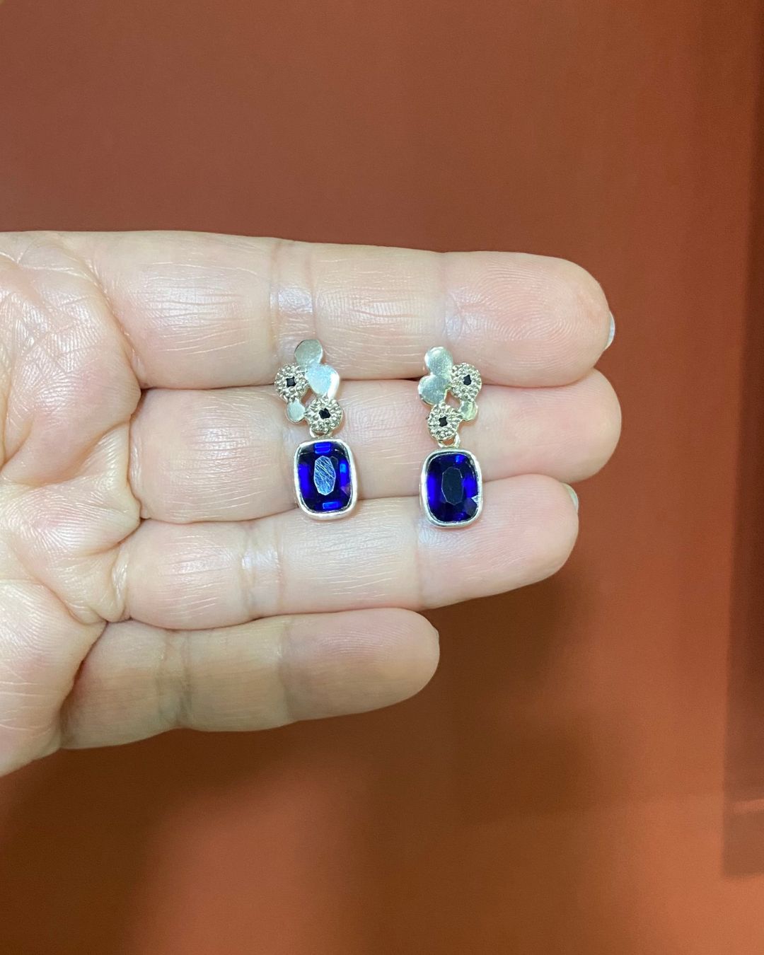 Brinco em prata 950, espinélio e safiras, trabalho manualmente em um processo 100% artesanal