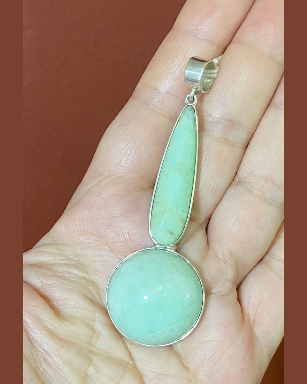 Pingente em prata 950 e gemas naturais de crisoprásio em forma de gota e amazonita oval